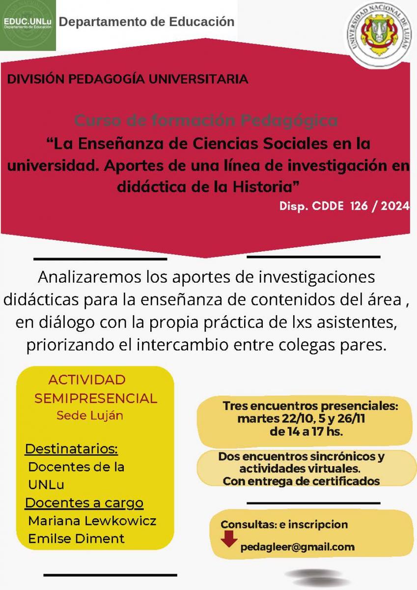 Curso de formación Pedagógica: “La Enseñanza de Ciencias Sociales en la universidad. Aportes de una línea de investigación en didáctica de la Historia”